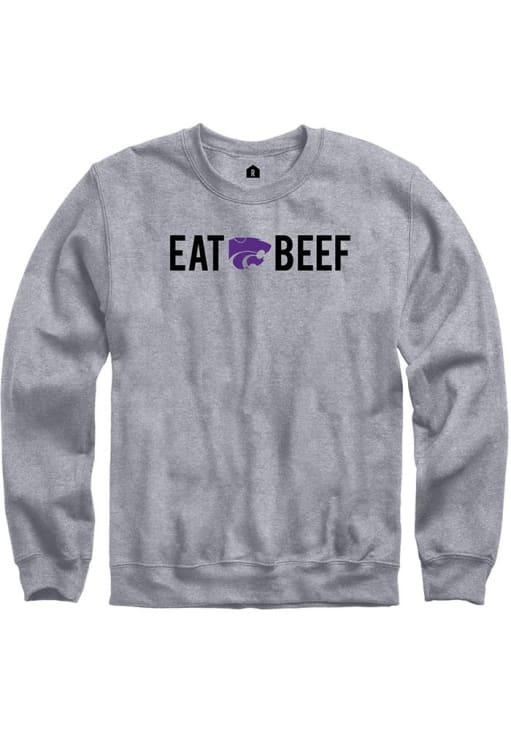 Gear up for the ultimate game day experience with this remarkable K-State WildcatsMens Grey Eat Beef Crew Sweatshirt! Designed with the true fan in mind, this Wildcats Long Sleeve Crew Sweatshirt features a Screen Printed Design. Stay warm and comfortable with this Mens K-State Wildcats Wildcats Crew Sweatshirt.
