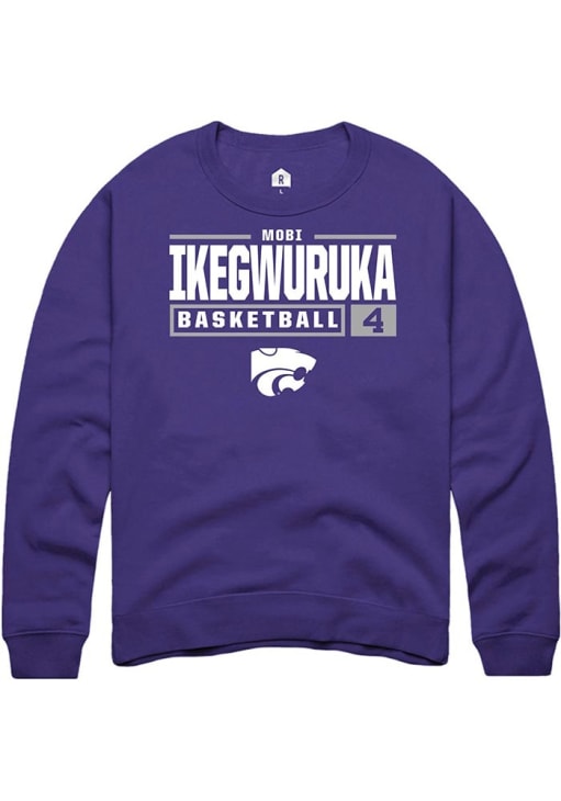 Mobi Ikegwuruka Rally Mens Purple K-State Wildcats NIL Stacked Box Crew Sweatshirt