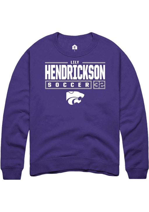 Lily Hendrickson Rally Mens Purple K-State Wildcats NIL Stacked Box Crew Sweatshirt