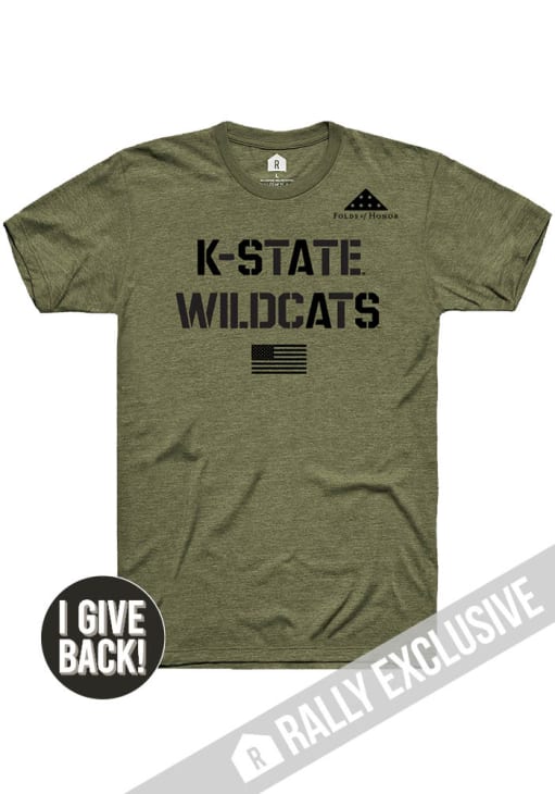 Support your K-State Wildcats in this Olive Short Sleeve Fashion Tee! This Folds of Honor Stencil Fashion T Shirt features a screen print team graphic on front chest. Be ready to yell "Fear The Cats" when you wear this K-State Wildcats Short Sleeve Fashion T Shirt in your favorite stadium or on the street.