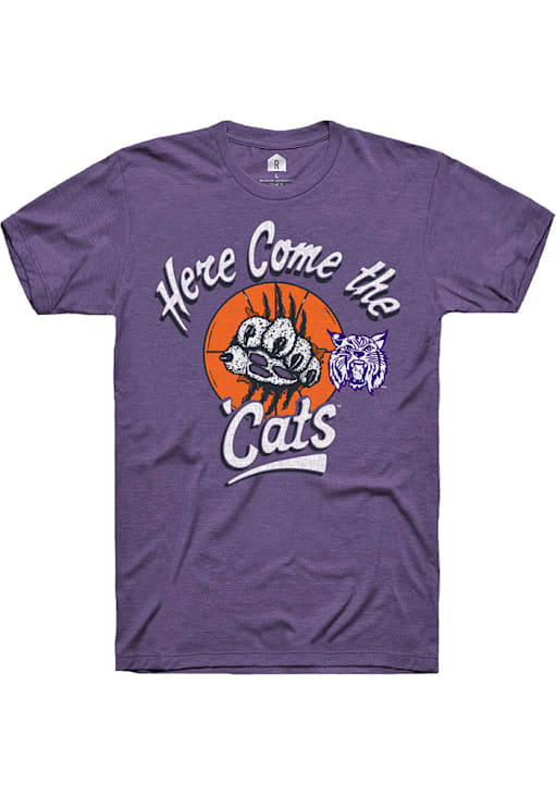 Support your K-State Wildcats in this Purple Short Sleeve Fashion Tee! This Here come the Cats Fashion T Shirt features a a screenprint graphic of here come the Cats on the front chest.. Be ready to yell "Fear The Cats" when you wear this K-State Wildcats Short Sleeve Fashion T Shirt in your favorite stadium or on the street.