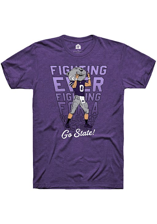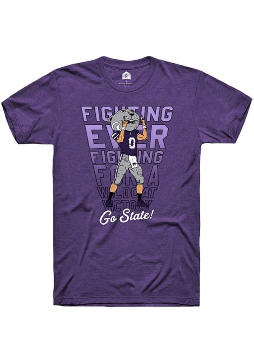 Support your K-State Wildcats in this Purple Short Sleeve Fashion Tee! This Victory Willie mascot Fashion T Shirt features a a screenprint graphic of victory Willie mascot on the front chest.. Be ready to yell "Fear The Cats" when you wear this K-State Wildcats Short Sleeve Fashion T Shirt in your favorite stadium or on the street.