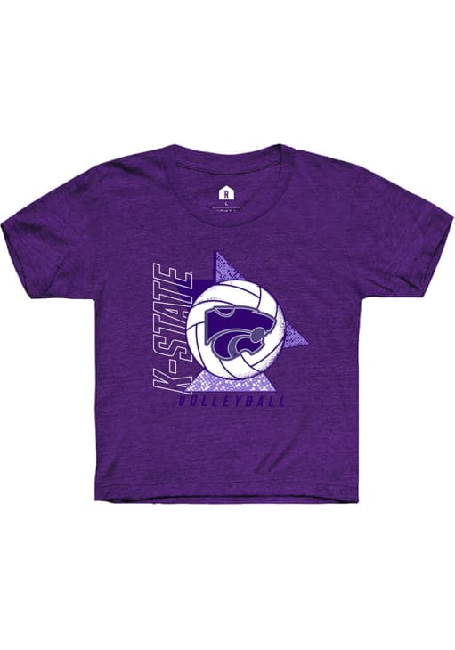 Size Chart for Youth K-State Wildcats Purple Rally Volleyball Triangle Short Sleeve T-Shirt