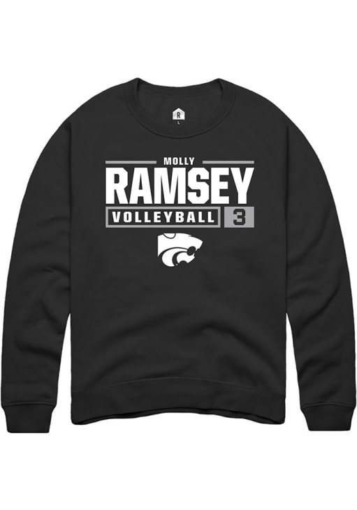Molly Ramsey Rally Mens Black K-State Wildcats NIL Stacked Box Crew Sweatshirt