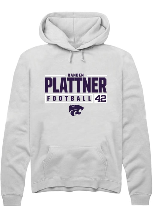 Randen Plattner Rally Mens White K-State Wildcats NIL Stacked Box Hooded Sweatshirt