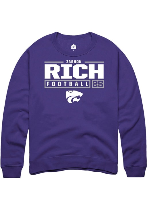 Zashon Rich Rally Mens Purple K-State Wildcats Football NIL Stacked Box Crew Sweatshirt