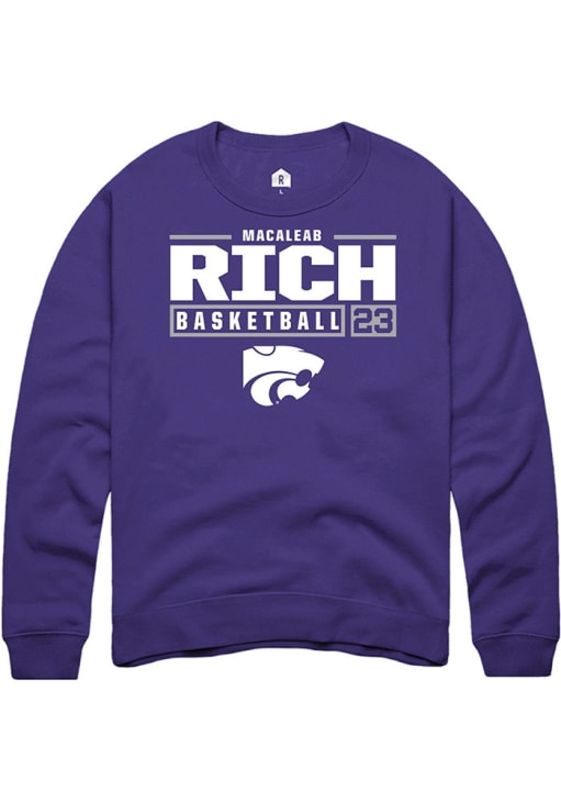 Macaleab Rich Rally Mens Purple K-State Wildcats NIL Stacked Box Crew Sweatshirt