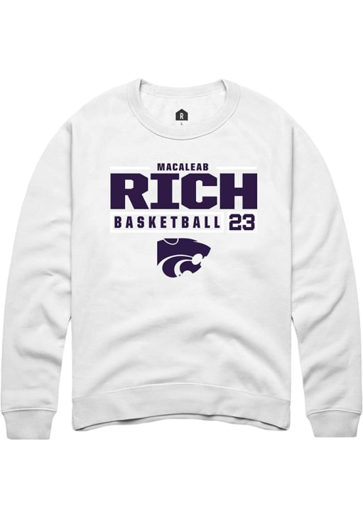 Macaleab Rich Rally Mens White K-State Wildcats NIL Stacked Box Crew Sweatshirt