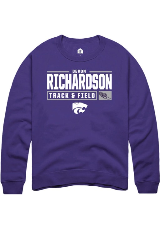 Devon Richardson Rally Mens Purple K-State Wildcats NIL Stacked Box Crew Sweatshirt