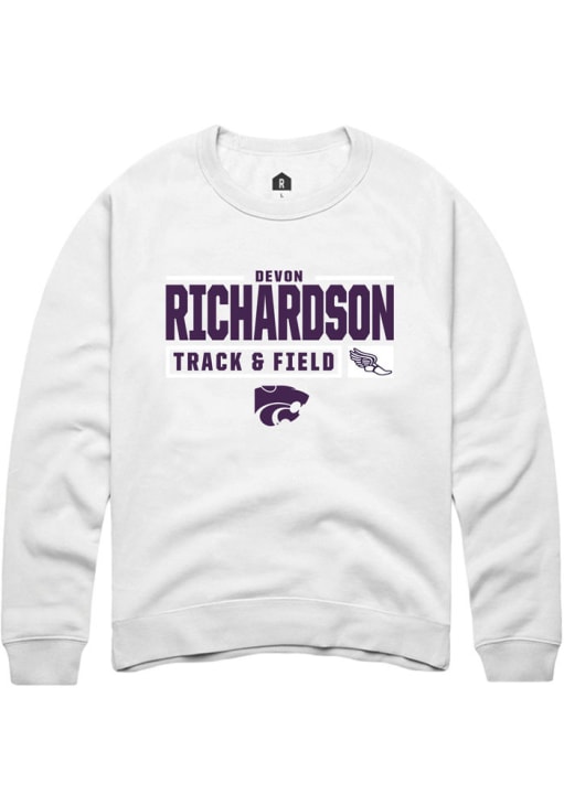Devon Richardson Rally Mens White K-State Wildcats NIL Stacked Box Crew Sweatshirt
