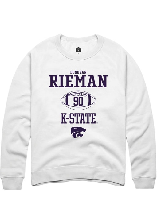 Donovan Rieman Rally Mens White K-State Wildcats NIL Sport Icon Crew Sweatshirt