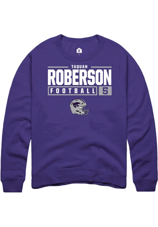 Ta'Quan Roberson Rally Mens Purple K-State Wildcats NIL Stacked Box Crew Sweatshirt