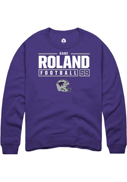 Support your K-State Wildcats and favorite Gabriel Roland in this K-State Wildcats Mens Purple NIL Stacked Box Player Crew. This Crew Sweatshirt features a custom graphic with player's name and number, and is sure to stand out in the stadium. Perfect to wear on game day or any day!