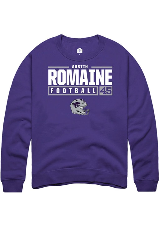 Austin Romaine Rally Mens Purple K-State Wildcats NIL Stacked Box Crew Sweatshirt
