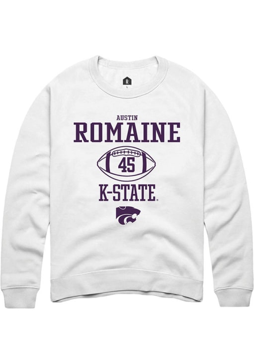 Austin Romaine Rally Mens White K-State Wildcats NIL Sport Icon Crew Sweatshirt