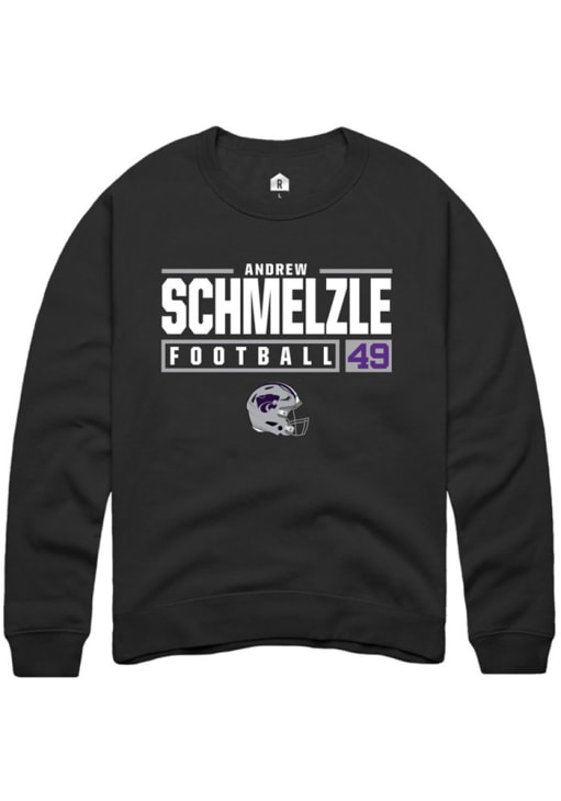 Andrew Schmelzle Rally Mens Black K-State Wildcats NIL Stacked Box Crew Sweatshirt