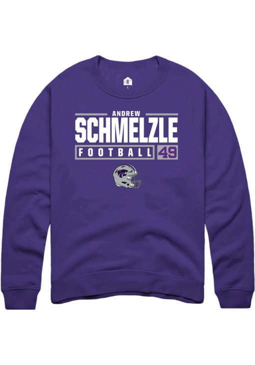 Andrew Schmelzle Rally Mens Purple K-State Wildcats NIL Stacked Box Crew Sweatshirt