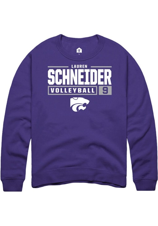 Lauren Schneider Rally Mens Purple K-State Wildcats NIL Stacked Box Crew Sweatshirt