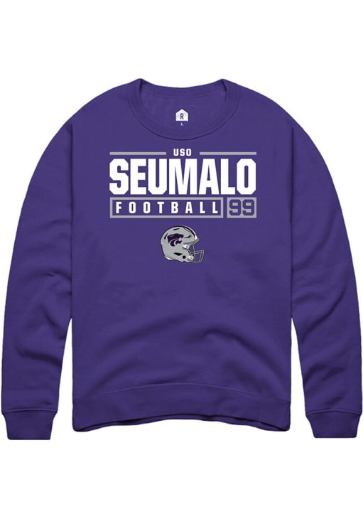 Uso Seumalo Rally Mens Purple K-State Wildcats NIL Stacked Box Crew Sweatshirt