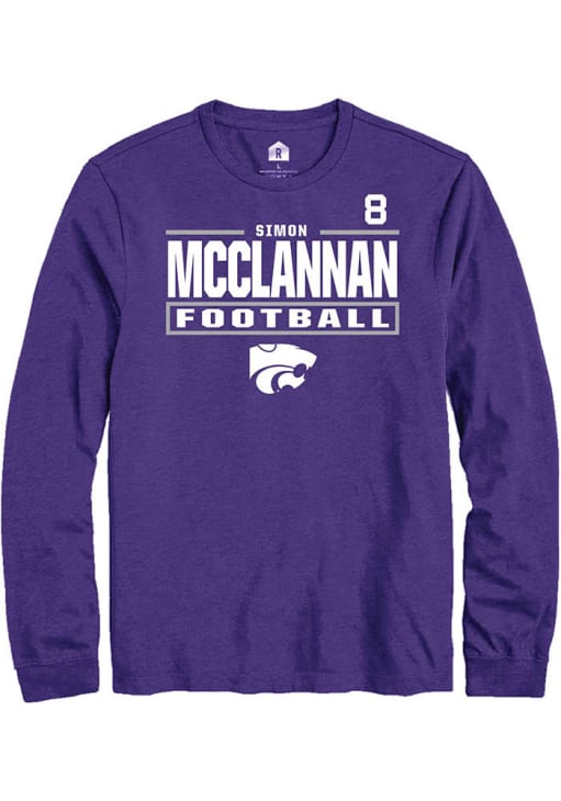 Embrace the spirit of your favorite player in this K-State Wildcats Purple Football NIL Stacked Box Simon McClannan Long Sleeve Player Tee! This Player T Shirt features a NIL graphic, so everyone will know you cheer for K-State Wildcats, Simon McClannan! This is the perfect Wildcats Player Tee for game days. Fear The Cats!