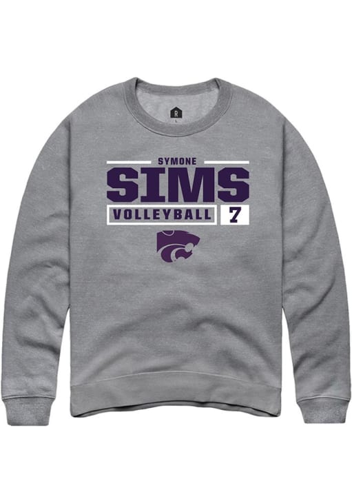 Symone Sims Rally Mens Graphite K-State Wildcats NIL Stacked Box Crew Sweatshirt