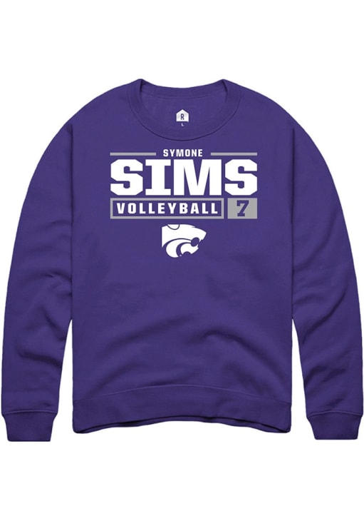 Symone Sims Rally Mens Purple K-State Wildcats NIL Stacked Box Crew Sweatshirt