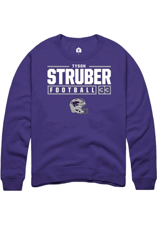 Tyson Struber Rally Mens Purple K-State Wildcats NIL Stacked Box Crew Sweatshirt