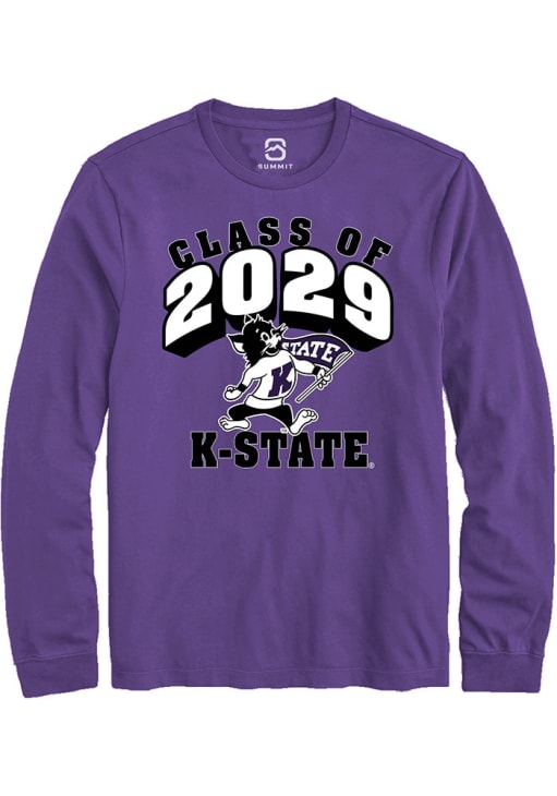 Show your K-State Wildcats spirit in this K-State Wildcats Purple T Shirt! This K-State Wildcats Class of 2029 Long Sleeve T Shirt makes a great layer for cooler nights cheering on the Wildcats. Featuring a team graphic, this K-State Wildcats Long Sleeve Tee is an essential addition for every fan. Fear The Cats!