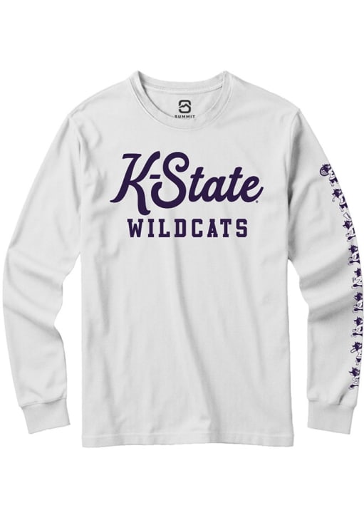 Show your K-State Wildcats spirit in this K-State Wildcats White T Shirt! This K-State Wildcats Varsity Willie All Sport Long Sleeve T Shirt makes a great layer for cooler nights cheering on the Wildcats. Featuring a screen print on front chest and left sleeve, this K-State Wildcats Long Sleeve Tee is an essential addition for every fan. Fear The Cats!