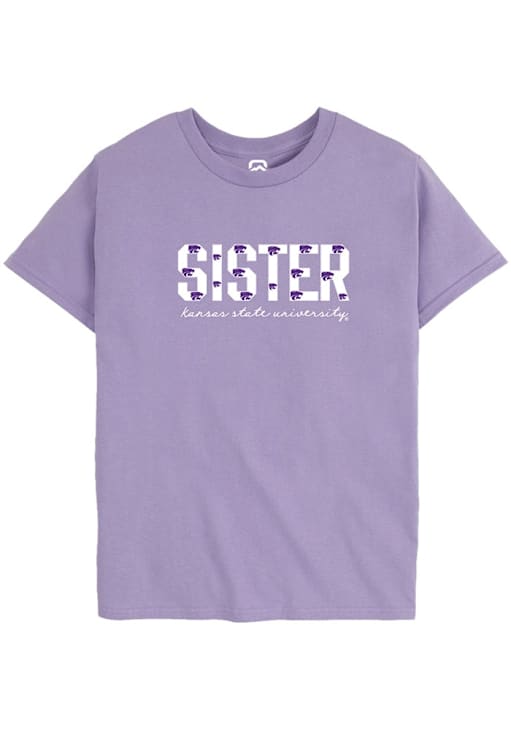 Product Details Product Details Screen print team graphicScreen print team wordmarkDouble hemmedShort sleevePerfect for any young sports fan!100% COTTONImport, Domestic Officially Licensed Your future K-State Wildcats will be gameday ready in this LavenderYouth Short Sleeve Tee. This Sister T-Shirt features a screen print team graphic.