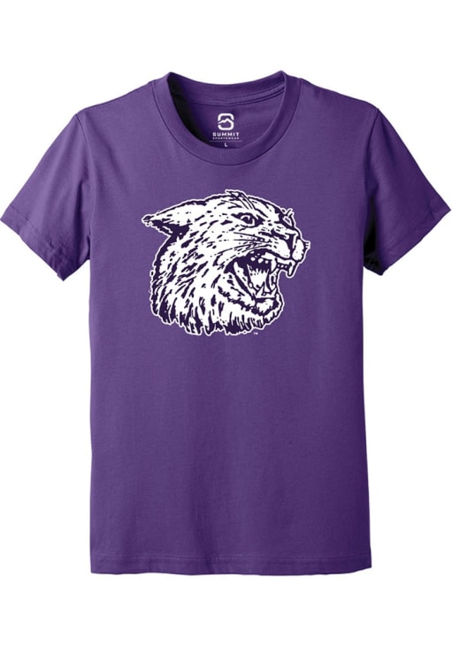 Product Details Product Details Topstitched ribbed-knit collarShoulder-to-shoulder self-fabric back neck tapeDouble-needle sleeves and bottom hem100% CottonImport, Domestic Officially Licensed Your future K-State Wildcats will be gameday ready in this PurpleYouth Short Sleeve Tee. This Vintage Cat T-Shirt features a Screen Printed Design.