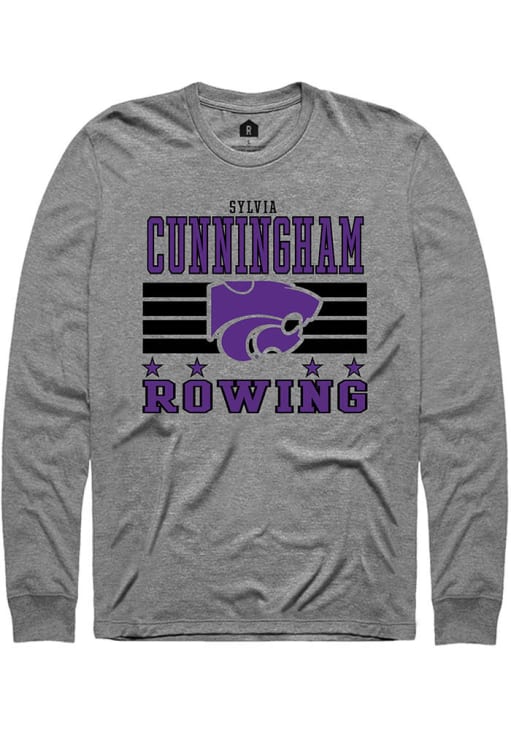 Show your K-State Wildcats spirit in this K-State Wildcats Grey T Shirt! This K-State Wildcats NIL Striped Long Sleeve T Shirt makes a great layer for cooler nights cheering on the Wildcats. Featuring a custom graphic with player's name and number, this K-State Wildcats Long Sleeve Tee is an essential addition for every fan. Fear The Cats!