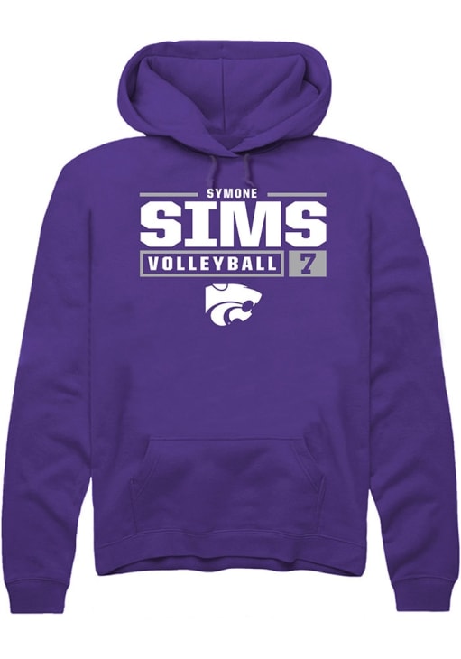 Symone Sims Rally Mens Purple K-State Wildcats NIL Stacked Box Hooded Sweatshirt