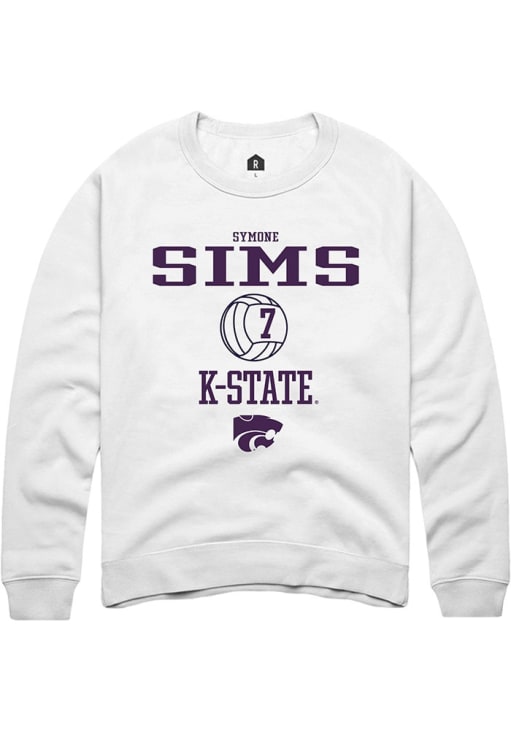 Symone Sims Rally Mens White K-State Wildcats NIL Sport Icon Crew Sweatshirt