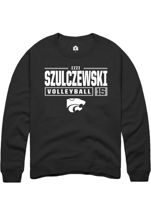 Izzi Szulczewski Rally Mens Black K-State Wildcats NIL Stacked Box Crew Sweatshirt