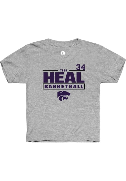 Kids, support your favorite player in this Youth Grey K-State Wildcats Tess Heal Short Sleeve Player Tee! This Player T-Shirt features a NIL graphic, so Tess Heal can feel your team spirit! This is a perfect Youth Player T-Shirt to wear either everyday or on game day. Fear The Cats!