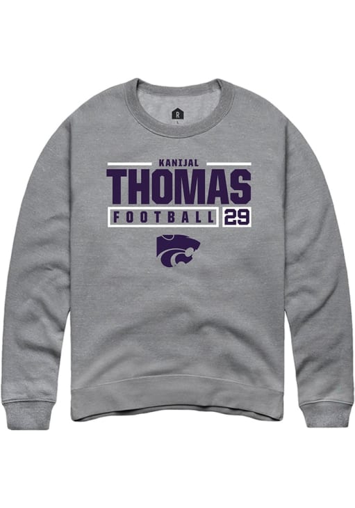 Kanijal Thomas Rally Mens Graphite K-State Wildcats NIL Stacked Box Crew Sweatshirt