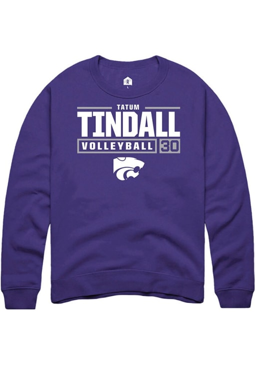 Tatum Tindall Rally Mens Purple K-State Wildcats NIL Stacked Box Crew Sweatshirt