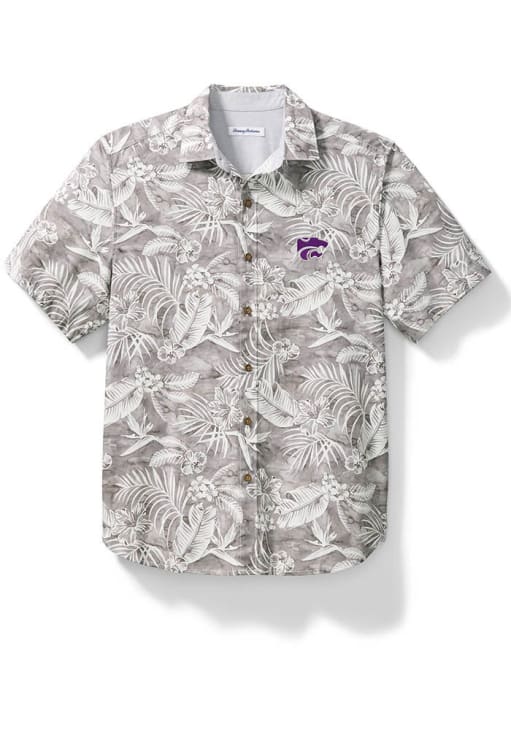 Elevate your style for any occasion with this sophisticated K-State Wildcats Short Sleeve Dress Shirt! Let your Wildcats pride show in this Grey Sport Aqua Lush Button Down Shirt. This Sport Aqua Lush K-State Wildcats Dress Shirt is perfect for showing your Wildcats pride at the office. Featuring a cotton spandex polin all over tropical print with logo embroidered on left chest, this K-State Wildcats Dress Shirt has a subtle touch of fan support.