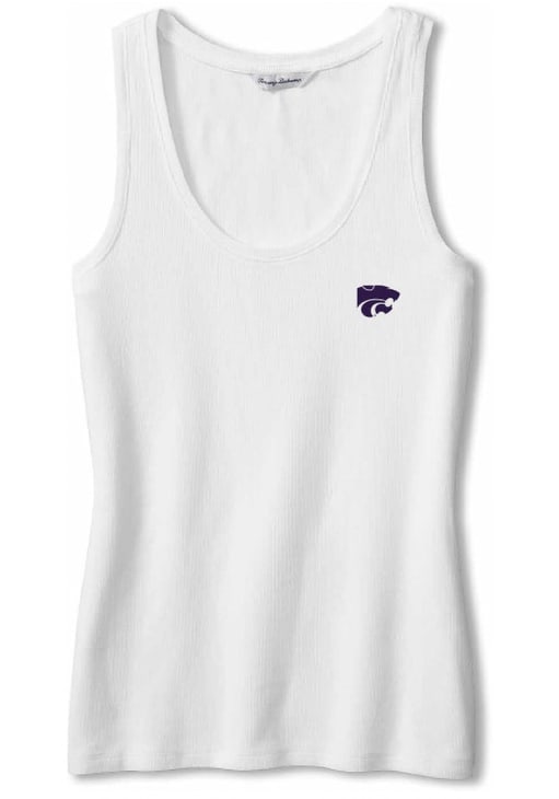 Elevate your tailgating style with this K-State Wildcats Womens Tank Top. Stay fashionable and comfortable in the refreshing White Barrier Bay Sleeveless Shirt. Discover the enticing details of this K-State Wildcats Tank Top, showcasing a embroidered team logo and graphic on center chest that's sure to impress.