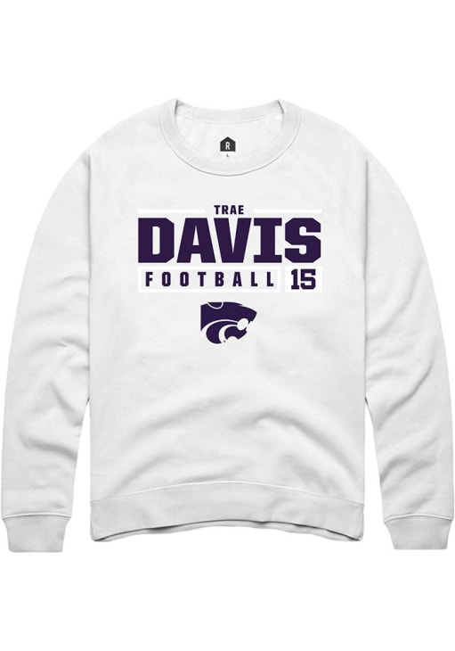 Trae Davis Rally Mens White K-State Wildcats NIL Stacked Box Crew Sweatshirt