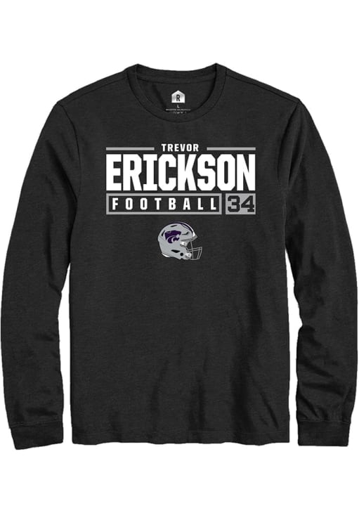 Trevor Erickson Rally Mens Black K-State Wildcats NIL Stacked Box Tee
