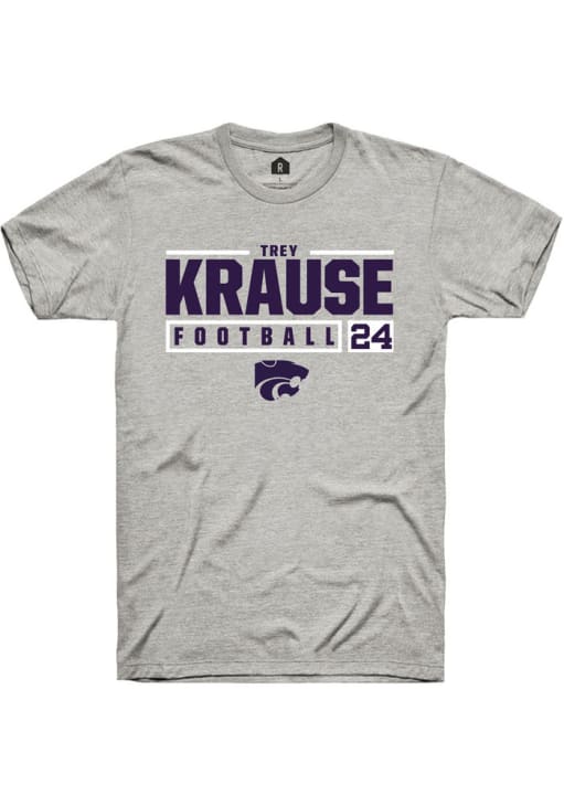 Trey Krause Ash K-State Wildcats NIL Stacked Box Short Sleeve T Shirt