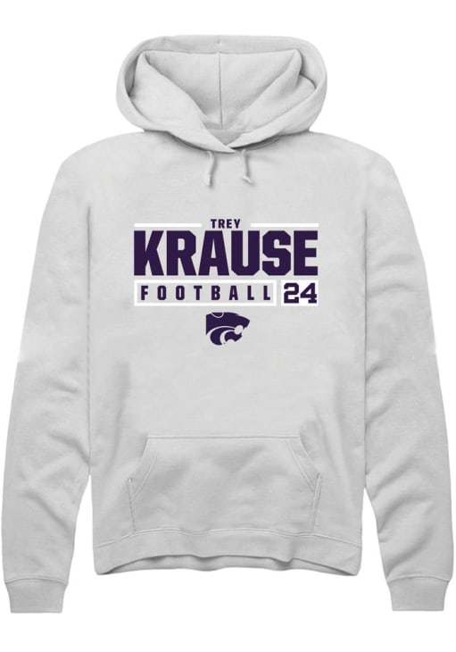 Trey Krause Rally Mens White K-State Wildcats NIL Stacked Box Hooded Sweatshirt