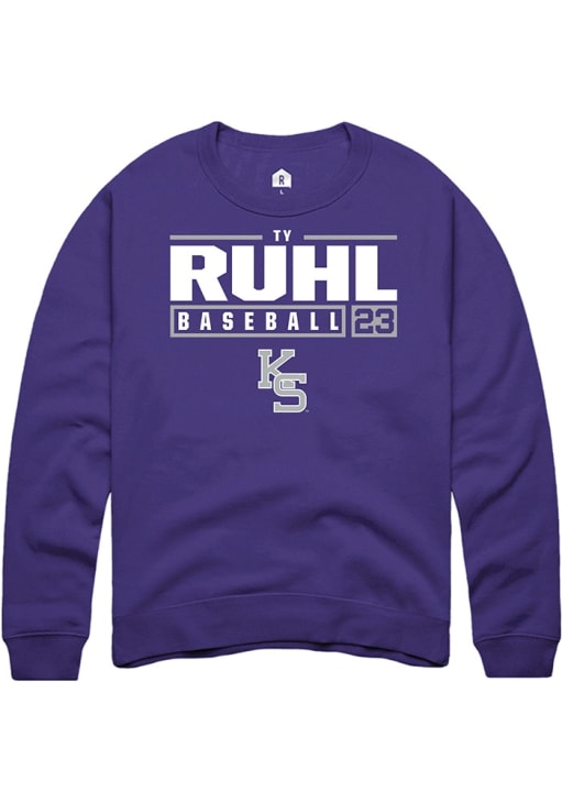 Ty Ruhl Rally Mens Purple K-State Wildcats NIL Stacked Box Crew Sweatshirt