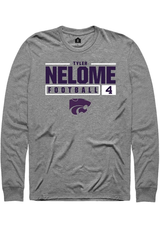 Show your K-State Wildcats spirit in this K-State Wildcats Graphite T Shirt! This K-State Wildcats NIL Stacked Box Long Sleeve T Shirt makes a great layer for cooler nights cheering on the Wildcats. Featuring a custom graphic with player's name and number, this K-State Wildcats Long Sleeve Tee is an essential addition for every fan. Fear The Cats!