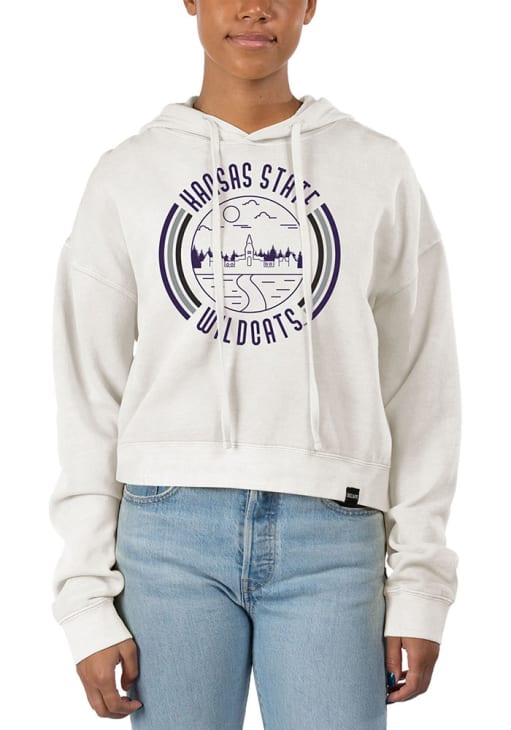 Embrace your Wildcats pride and showcase your team spirit with confidence in this K-State Wildcats Long Sleeve Hoodie! Stay warm and stylish with the K-State Wildcats Womens Ivory Pigment Dyed Crop Hooded Sweatshirt. Designed with 80% Cotton/20% Polyester Ivory Pigment Dyed Crop Hoodie With printed logo graphic, this Wildcats Long Sleeve Hoodie is a must-have for dedicated fans.