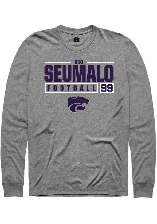 Uso Seumalo Rally Mens Graphite K-State Wildcats NIL Stacked Box Tee