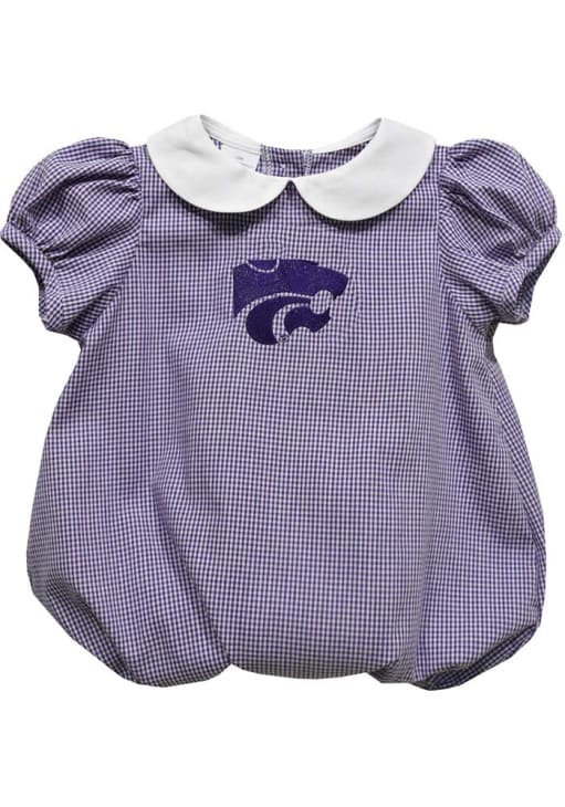 Your little Wildcats fan will look adorable in this Baby Purple K-State Wildcats Gingham Collar One Piece! This K-State Wildcats Romper features a embroidered team logo on gingham print.