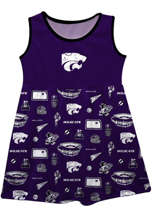 Let your unique style show in this K-State Wildcats Toddler Girls Dress. Featuring a hand sketched artwork perfect to keep the new fan cheering for your favorite team, this Purple Wildcats Dress is the perfect way to show off your style and pride for the K-State Wildcats.